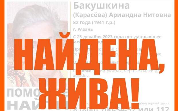 Напомним, местонахождение женщины было неизвестно с 25 декабря. С собой у пенсионерки синий рюкзак и чёрные палки для ходьбы.