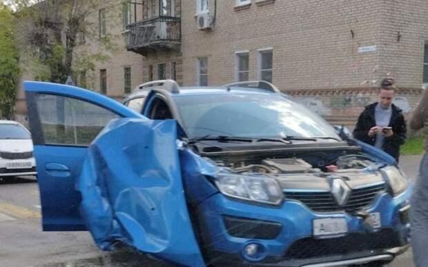 Авария произошла на пересечении улиц Гоголя и Полетаева. На кадрах вино, что у легковушки оторвало капот, повреждения серьезные.