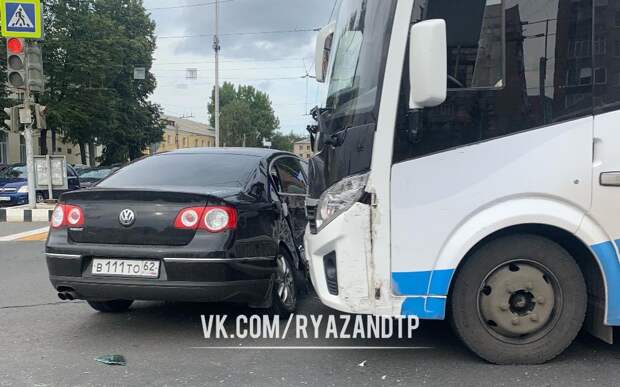 Авария произошла на Первомайском проспекте. Столкнулись маршрутка и легковушка Volkswagen Passat. Движение на дороге сильно затруднено.
