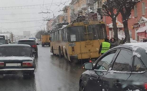 По словам очевидцев, откололся один из штанговых токоприёмников. Движение автомобилей затруднено, но незначительно: троллейбус припаркован у обочины.