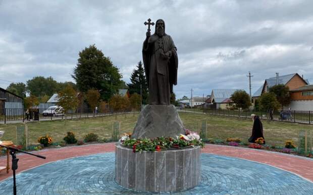 Памятник установлен на малой родине преподобного в рамках мероприятий Года первого православного святого Русской Америки Германа Аляскинского, объявленного в Рязанской области. Памятник, созданный скульптором Олегом Седовым, выполнен из композитных материалов.