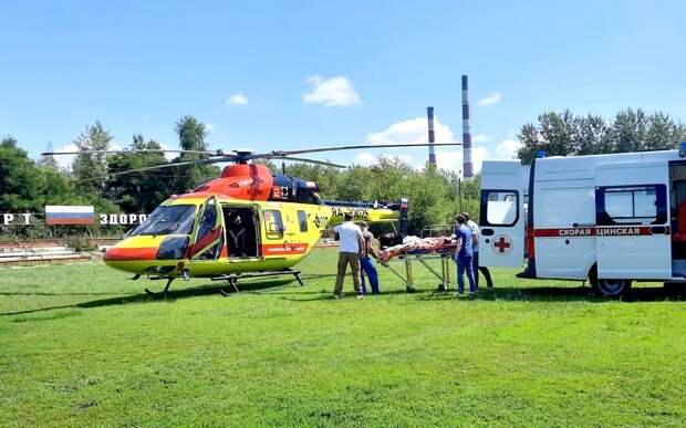 Вертолёт санавиации эвакуировал 32-летнюю пациентку, которая получила разрыв кишечника из-за травмы.