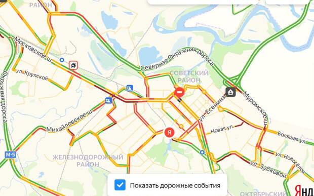 Затор есть на Дзержинского, Первомайском проспекте, Вокзальной, на Московском шоссе и Северной окружной.