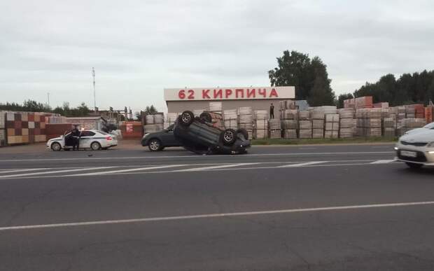 Авария произошла вечером в понедельник, 22 августа. На кадрах можно заметить, что один из автомобилей перевернулся на крышу. Второй участник ДТП стоит недалеко – у машины имеются серьёзные механические повреждения.