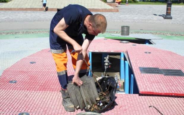 В мэрии отметили, что за этот сезон фонтан отключили уже в третий раз из-за большого количества мусора, попадающего в чашу. Это небольшие игрушки, обёртки от продуктов питания, пыль. Фильтры забиваются, приходится сливать воду, чтобы очистить их.