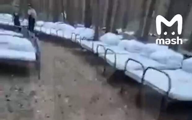 Отмечается, что пожарные спали на кроватях, но без крыши над головой.