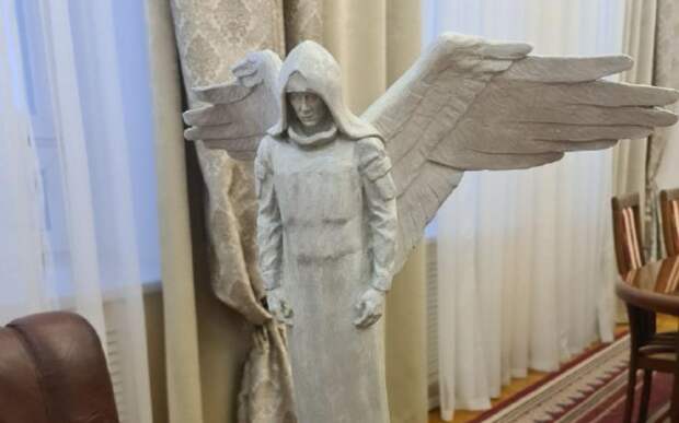 Власти попросили скульптора Олега Седова помочь с оформлением мемориала. Он показал прототип — небольшую статуэтку с изображением женщины с крыльями.