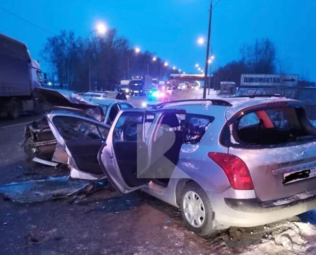 Авария произошла в 15.30 на 185 километре автодороги. Столкнулись «Нива Шевроле», «Фольксваген», «Лада Веста» и «Пежо». На кадрах видно, что все транспортные средства получили серьёзные механические повреждения.