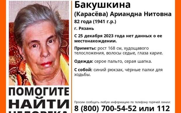 Местонахождение рязанки неизвестно с 25 декабря. Приметы: рост 168 сантиметров, худощавого телосложения, карие глава, седые волосы.