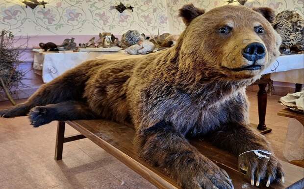 Например, музейным медведям уже исполнился век: "Чучела медведей поступили в музей еще в 1923 году. По отзывам таксидермистов, сделаны они очень качественно – более чем за сто лет их шкуры не тронул ни один биовредитель. Секрет этого, скорее всего, кроется в способах обработки: раньше для этого использовались сильные яды: мышьяк и сулема (хлорид ртути)".