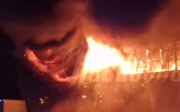 Источник сообщил, что пожарным пока не удаётся потушить огонь «из-за особенностей расположения очага». Видео можно посмотреть здесь.