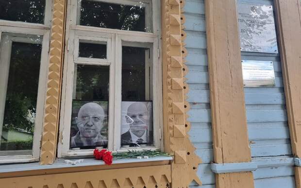 Цветы несут также в штаб Захара Прилепина на Радищева, 59А. Фотографии Пригожина и Уткина и цветы также можно увидеть на стихийном мемориале у здания клуба "Торпеда" на Затинной, 32Б - здесь действовал центр по набору бойцов в ЧВК.