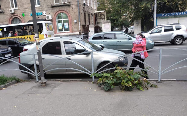 Речь идёт детской поликлинике №1 на улице Дзержинского, дом №8. При этом там есть даже знак «Парковка для инвалидов», но нет возможности попасть на тротуар даже людям без особенностей.