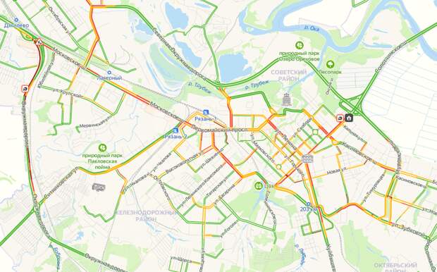 Уровень пробок оценивается в 9 баллов. Самые серьёзные затруднения движения отмечаются на Южной окружной. Интернет-ресурсы сообщают, что там произошло сразу несколько ДТП. Также авария на Солотчинском шоссе. Из-за этого стоит практически вся улица Есенина.
