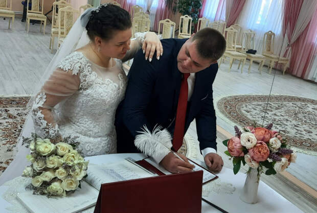 Возможно, это связано с тем, что многие молодожёны заключают брак после того, как женихи получили повестку - такие браки регистрируют без длительного ожидания.Впрочем, были среди молодожёнов и уже взрослые пары, проверившие отношения временем, и те, кто явно планировал праздник заранее. В плане нарядом октябрь оказался месяцев классики: невесты предпочитали платья пастельных тонов, женихи - строгие костюмы (конечно, за исключением тех, кто пришёл в ЗАГС в военной форме).