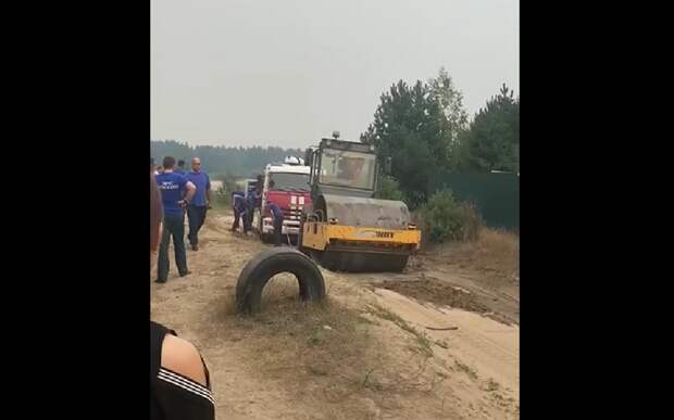 На фото видно, что автомобиль пытаются вызволить из западни. Сейчас в Деулине – множество пожарных машин, здесь собрана группировка сил, чтобы не допустить распространения лесного пожара.