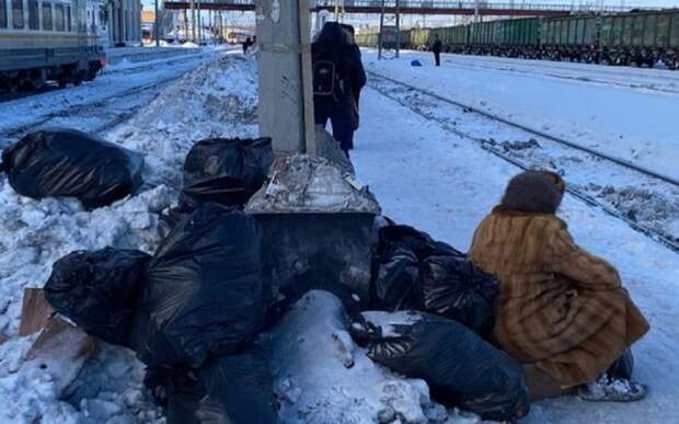 Рядом с ними и коротают время до посадки пассажиры: "Так как поезда опаздывают, стоять на морозе среди мусора приходится 15-20 минут".