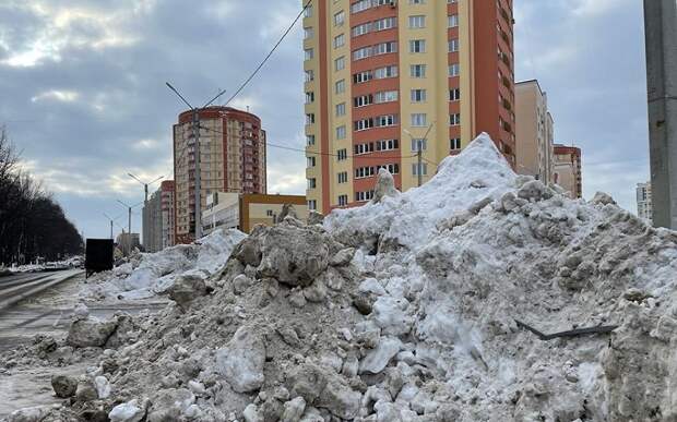Фотографии с очередными оставшимися после уборки кучами снега опубликованы в социальных сетях. Снимок сделан на улице Новосёлов.