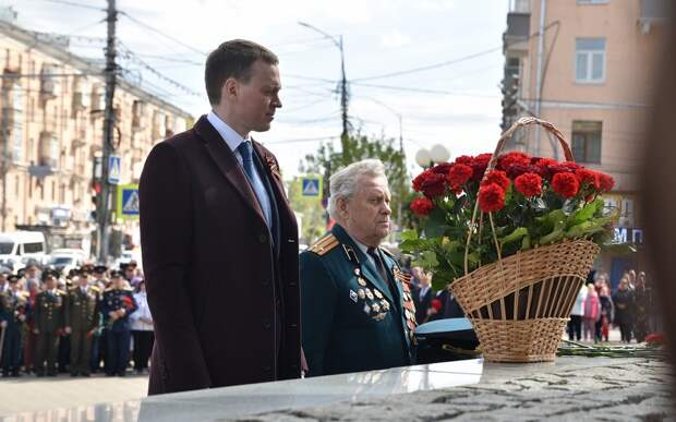 Праздничный день начали с возложения цветов к памятнику, который находится на площади Победы. В числе тех, кто пришел утром 9 Мая к мемориалу, был и глава региона.