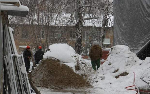 До конца текущей недели планируется завершить работы по фасаду и кровле. Уже завершено укрепление фундамента. Подрядчик должен сделать отмостку. В выходные дом подключат к отоплению для проведения отделочных работ внутри.