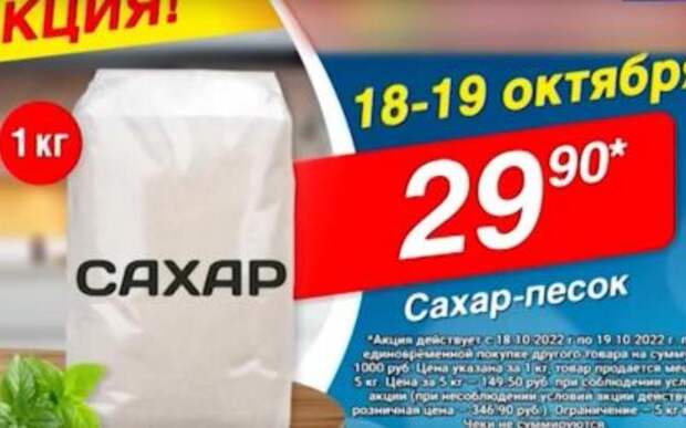 Напомним, по региональный телеканалам показывали рекламу сахара по цене в 29,90 рублей за килограмм в сети магазинов «Светофор». При этом для покупателей стало неожиданностью на кассе, когда цена пробивалась прежняя, без скидки. Выяснилось, что людям надо было иметь в корзине продуктов на сумму в тысячу рублей, чтобы акция сработала.