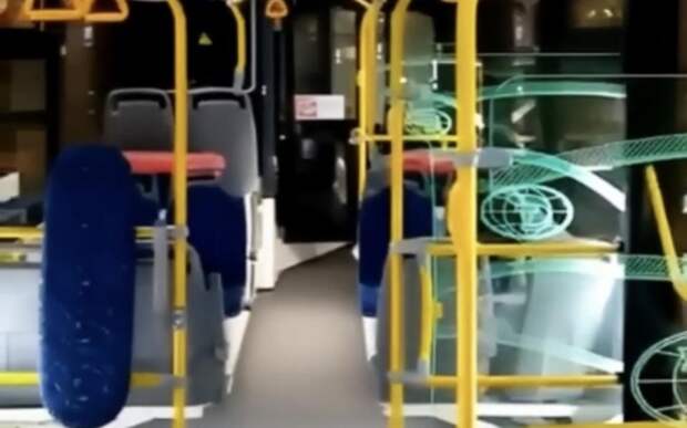 «Всё светится, всё в мониторах», - комментирует автор ролика. Действительно, в салоне троллейбусов есть большие экраны с двух сторон.