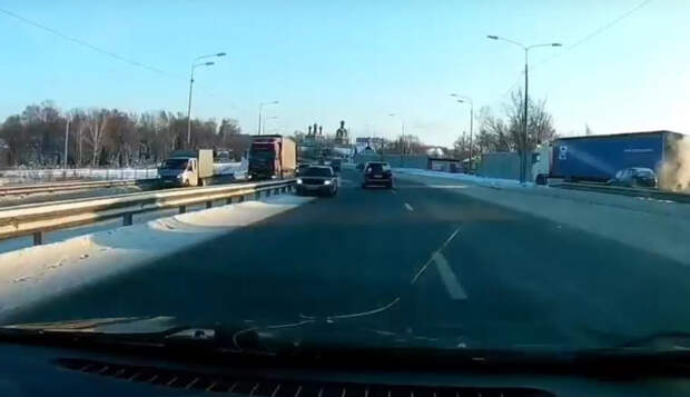 На кадрах видно, что автомобиль едет прямо вплотную к разделительной полосе. В комментариях пользователи предположили, что, возможно, его подрезали и он очутился на «встречке».