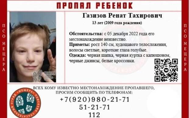 Приметы: рост 140 см, волосы светлые, стрижка короткая, худощавого телосложения, глаза голубые. Был одет в чёрную шапку, черную крутку с капюшоном, чёрные джинсы и белые кроссовки