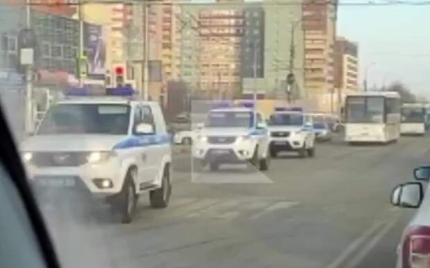 Служебные машины двигались по улице Есенина и Солотчинскому шоссе, сообщил автор ролика.