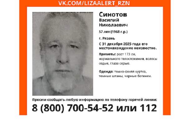 Василий Синотов пропал в Рязани. Где он находится, неизвестно с 31 декабря прошлого года.