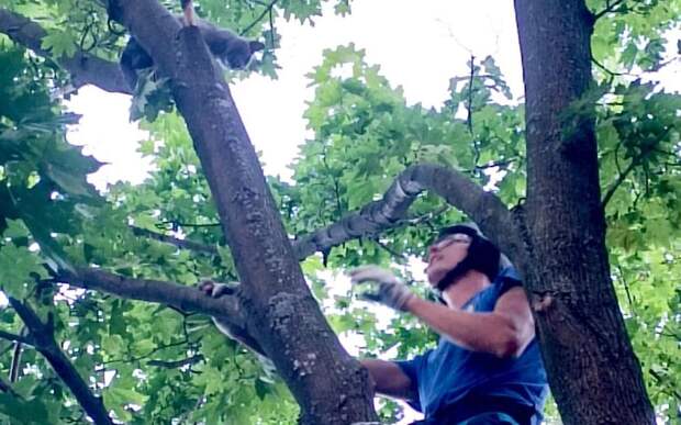 Кот забрался на дерево утром. Поздно вечером он его пришлось снимать уже с высоты третьего этажа. Местные сами попытались снять кота, но безуспешно — вызвали спасателей.
