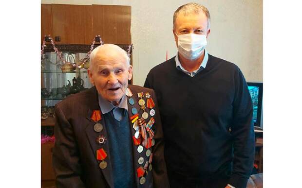 Ветерана приехали поздравлять представители администрации Захаровского района, родственники. Чиновники принесли ему подарки, продуктовый набор.