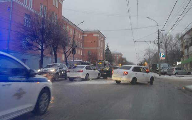 ДТП случилось утром во вторник, 13 декабря, на улице Гагарина. Судя по кадрам, столкнулись две легковушки. На месте работает экипаж ДПС.