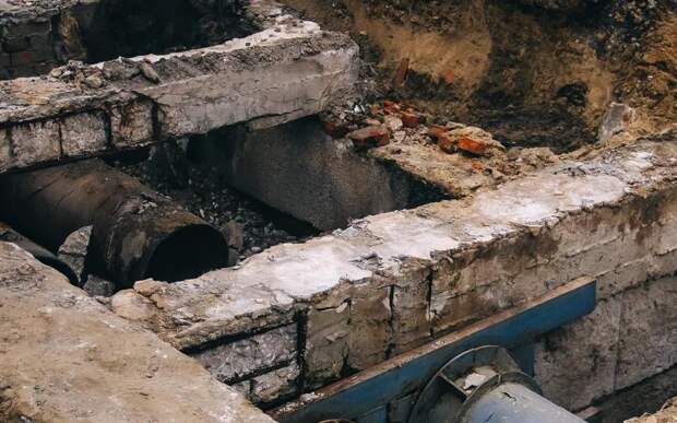 Повреждённый участок трубы радом с больницей № 11 вырезали, сейчас новый участок трубы подгоняют, далее бригада МУП «РМПТС» будет приваривать этот новый участок.