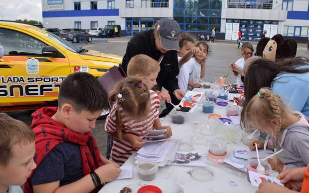 Ребята смогли встретиться и пообщаться с гонщиками команды LADA Sport ROSNEFT - чемпионами Российской серии кольцевых гонок. Дети расспрашивали, как организованы команды, что должен уметь профессиональный гонщик.