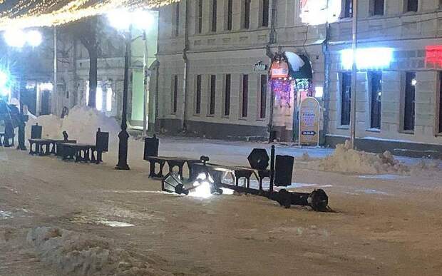 Автор сообщил, что инцидент произошёл во время уборки снега. Трактор задел светильник и снёс его.