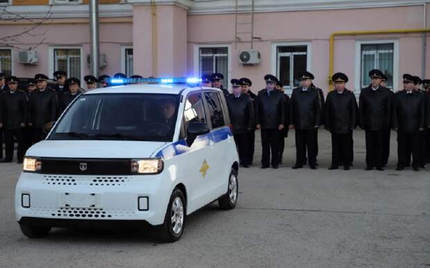 Завершился визит торжественным вручением ключей от электромобиля - машина достаточно компактная и маневренная, сотрудники правоохранительных органов смогут использовать ее для патрулирования пешеходных зон, парков и сквером города.
