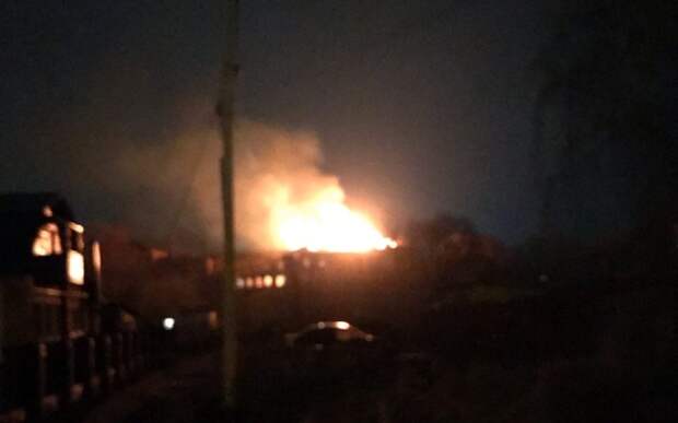 Вызов поступил в 22:24. На место выехали два расчёта. Площадь пожара составила 150 кв.м. Никто не пострадал.