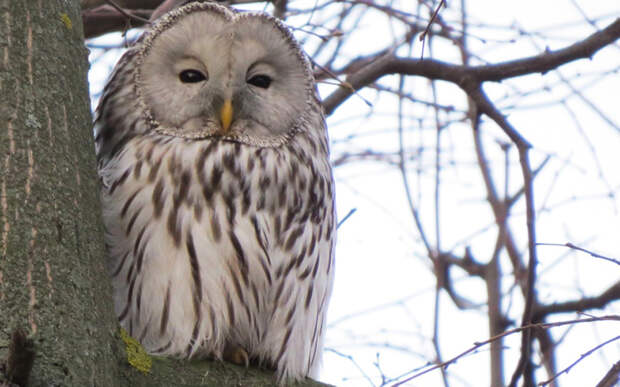 Орнитологи предполагают, что сова может быть больна. Они вызывали спасателей, чтобы снять птицу с дерева, но та улетела на другое.