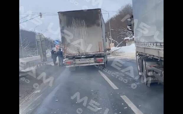В аварию попала фура, двигавшаяся в сторону Москвы. Большегруз другим машинам, следующим в направлении столицы, приходится объезжать.