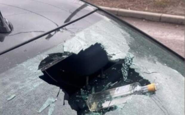 Инцидент произошёл у дома № 37 на улице Новосёлов. На кадрах видно, что стекло иномарки BMW пробила пустая бутылка из-под алкоголя.