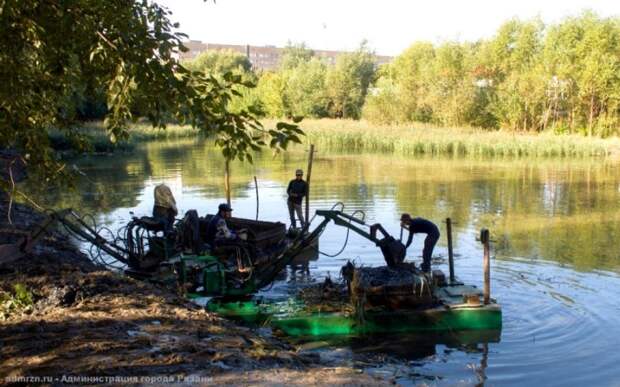 Работы выполняет ООО «Экология прудов», они продлятся неделю. Из водоёма вывезли порядка 200 кубических метров донных отложений, планируют 600.