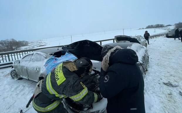 «На 216-м километре платного участка автодороги "Дон" произошло несколько ДТП с участием более 50 легковых автомашин», — уточнил источник.