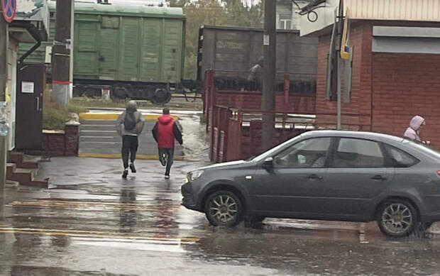 Судя по кадрам, двое мужчин, которые могут быть причастны к избиению, сбежали по направлению к ж/д путям.