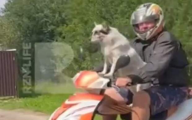 Из-за этого стороннему наблюдателю может показаться, что скутером управляет собака, а настоящий водитель просто едет в качестве пассажира.