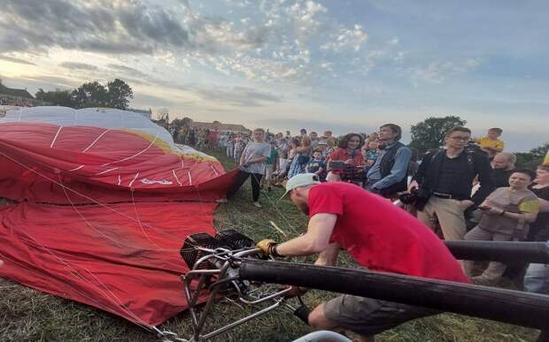 Несмотря на это, в Монастырском саду собралось немало гостей - они с интересом рассматривали аэростаты и фотографировались в корзинах.