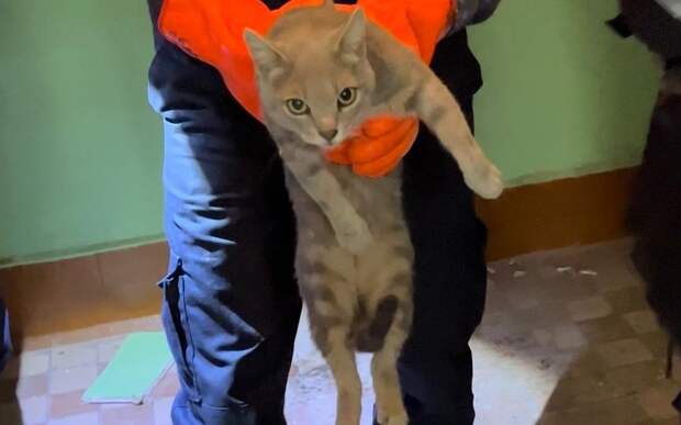 По словам жительницы дома, кот залез в электрический щиток и провалился между двумя стенами в час ночи. МЧС вызвали в 2 часа ночи. Сотрудники приехали за 20 минут, но пришлось ждать представителей УК до утра. Кот провалился на полтора метра, ширина между стенами была всего 7 см.