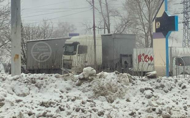 Авария произошла около 13:15 на Куйбышевском шоссе у заправки. Судя по данным сервиса «Яндекс.Пробки» движение у места инцидента сильно затруднено. На кадрах видно, что столкнулись фура и фургон.