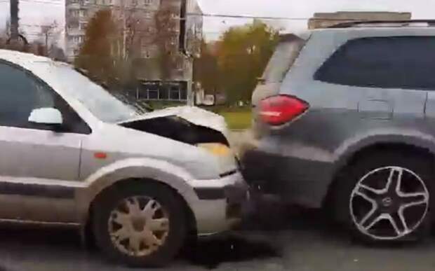 Авария произошла около 12:40 на Московском шоссе рядом с автомойкой самообслуживание. У одной из машин повреждён капот. На месте работают сотрудники полиции.