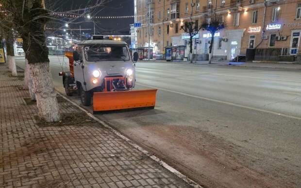 Более крупная техника убирала проезжую часть, днем работу по уборке города продолжат.